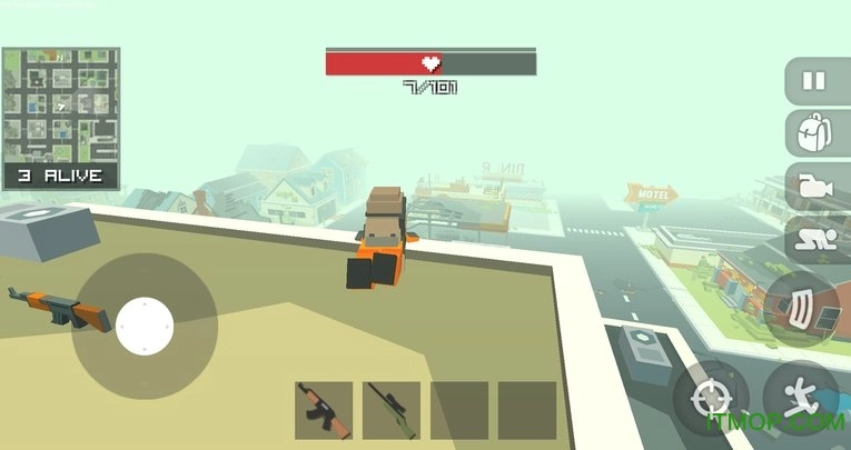 不知不觉间已经玩了半个多小时,从一开始落地就被淘汰,到后来能轻松“吃鸡”,我在游戏里的进步可以说是相当快了。首先得尽量找到趁手的武器,接着到房顶上观察四周的动静——能攻击就果断出手,没把握的话就尽量隐蔽自己。这款游戏玩起来确实很过瘾,不过美中不足的是目前还只有单机模式。据可靠消息,现在先以单机版本投放市场,看看玩家的反馈如何;要是反响不错,后续就会架设服务器,开启联机模式。