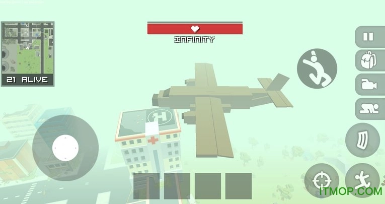 这是一款挺有意思的像素风格吃鸡类射击游戏,虽说没法和刺激战场这类大作相提并论,但胜在玩法更简单。经典的吃鸡模式,从飞机跳下的瞬间战斗就已开启,你得尽快找到防身武器,实在没有的话用拳头先解决周围敌人也行。像素小人没戴头盔、没穿防弹衣时格外脆弱,只要被击中头部就能一击致命。游戏里所有建筑都进不去,不过能顺着梯子爬到房顶;武器装备只能在街上搜寻,要是能找到一把AWM再爬上制高点,基本就能无敌了,但得留意毒圈范围——这个游戏里毒圈收缩速度特别快。