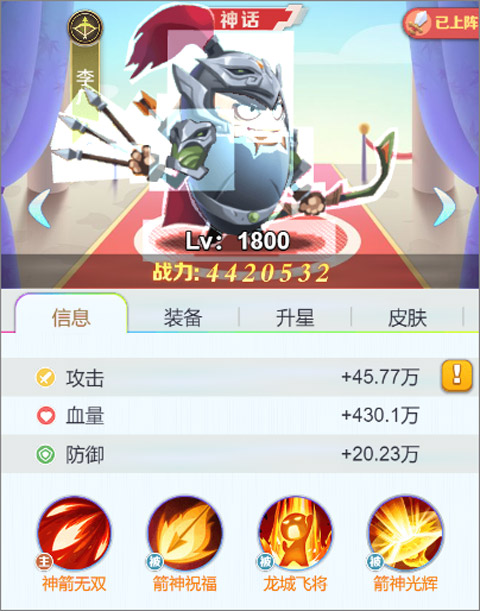 被动技能2:永久提升自身20%攻击力、20%生命值与20%防御力