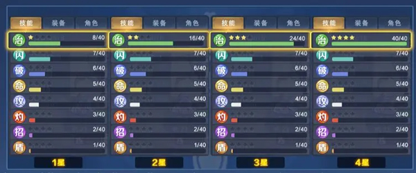 每研习一个普通、稀有或传说级别的内容,对应流派将分别获得1点、2点或3点经验值,这些经验可用于提升流派的星级。各星级所需经验如下:★需8经验,★★需16经验,★★★需24经验,★★★★需40经验。