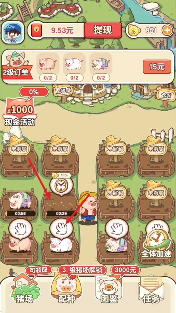 5、除此之外,游戏内还有一些任务可以去完成,可以赚钱不少金币,帮助你开设更多猪圈。