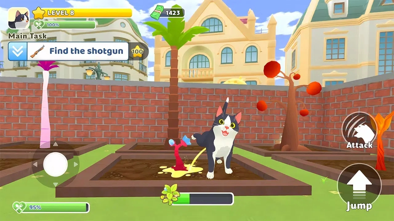 1、在游戏里扮演小猫咪,肆意破坏游戏中的房屋