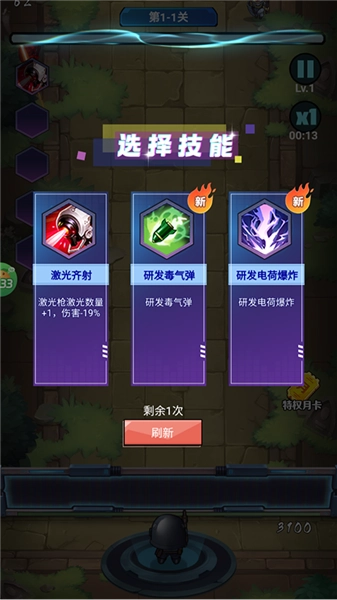 2、当最上面能量条满了后就可以选择新技能和升级技能。