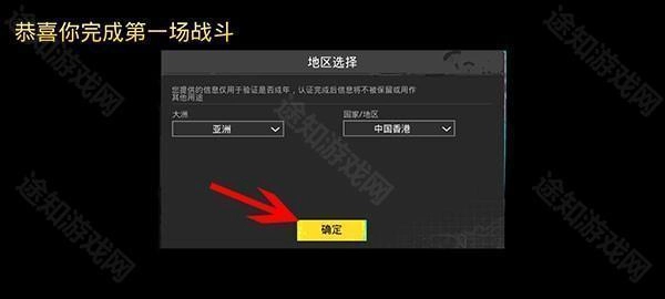 5、进入游戏后,根据自身情况选择地区,然后点击确定按钮;
