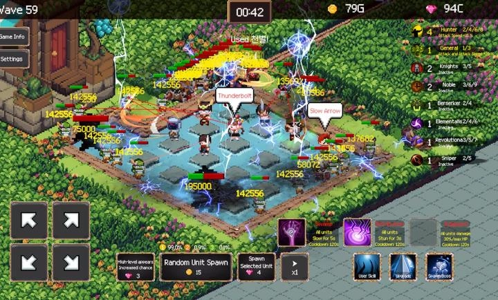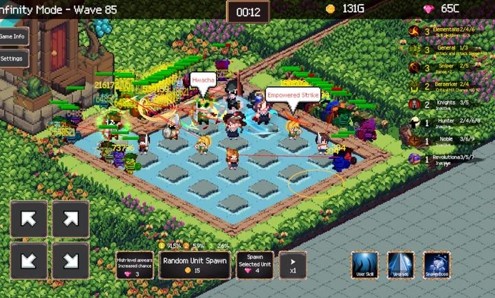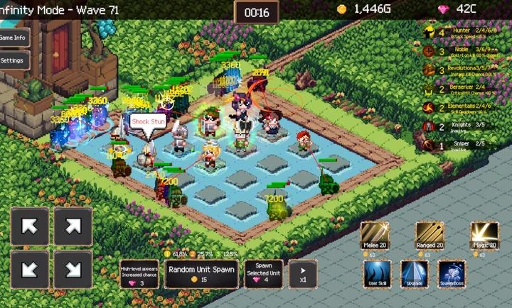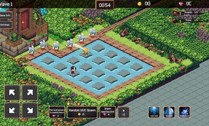 在8×8的网格地图里,通过拖动英雄单位实现合并升级,以此持续提高英雄的等级。