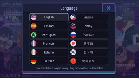 1、打开加查鬼灭之刃模组手机版,点击右下角的Language选项。