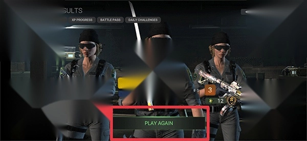 5、最后游戏结束后你还可以查看自己的战绩,若还想和队友再玩一局可以点击play again;