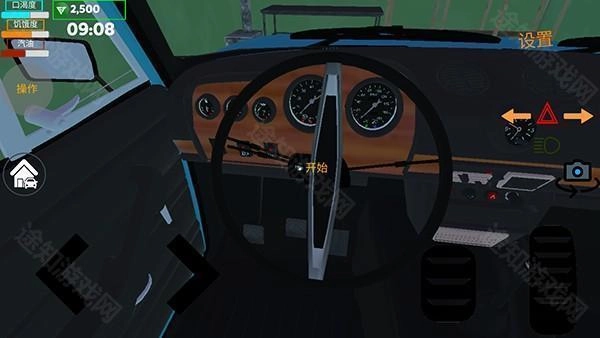 4、进入汽车之后,将准星对准汽车方向盘后面的钥匙孔,长按左上角操作启动汽车(注意一定要长按,直到汽车仪表盘动了为止),此时汽车已经启动完毕,通过右下角刹车油门控制汽车移动。