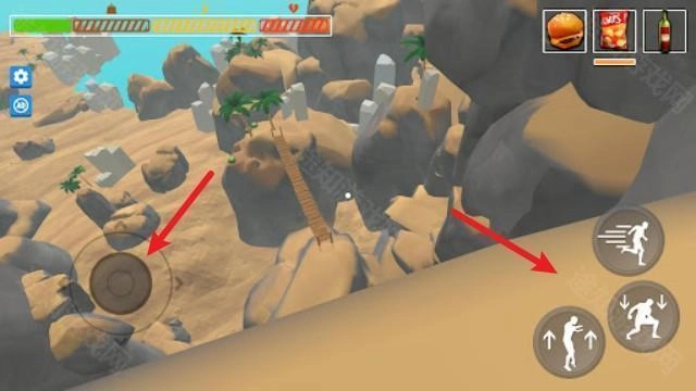 1、进入游戏后,左侧的摇杆控制人物移动,右侧可以加速、跳跃或者蹲下。