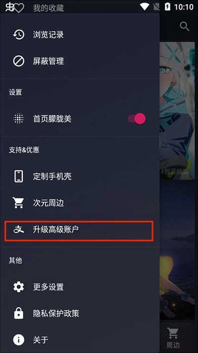 2、在菜单栏中,找到“升级高级账号”点击进入;