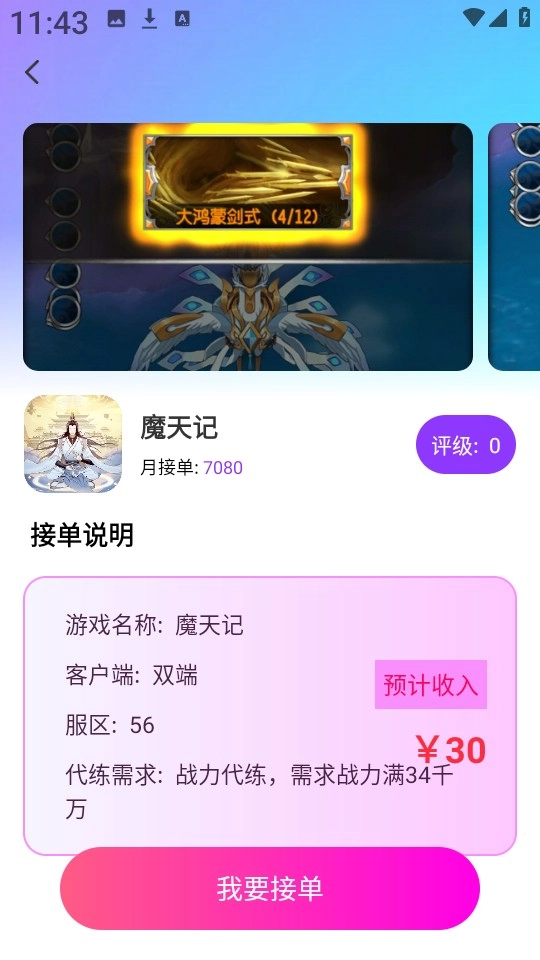 3、这里小编以“魔天记”游戏为例,直接点击“我要接单”即可。