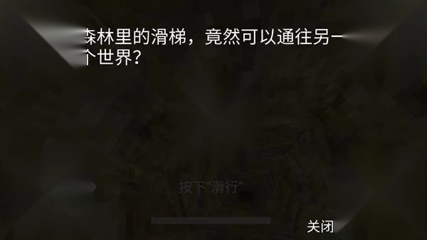 前两次还是很正常的,第三次的时候,游戏走向变了,画面会变黑,在前面捡到一个手电筒,玩家可以拿着手电筒继续滑;