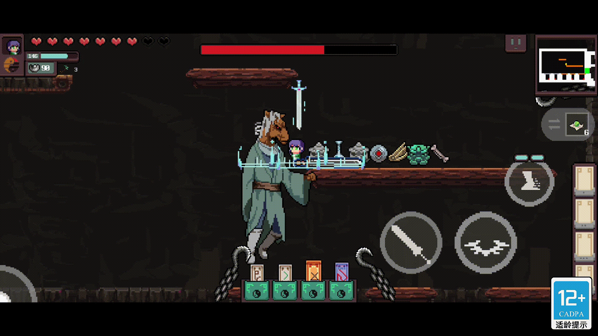 牛头处于半血状态下将发动技能:陀螺肉弹,以身体为武器高速旋转并移动,对敌人进行近距离连续高伤害,此技为牛头绝技。