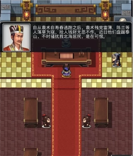 完成对话后出北海城,消灭北海城西边的黄巾军将领管亥之后再返回太守府,随后即可在泰山门口发现奄奄一息的袁术。