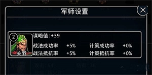 玩家为队伍中设置军师可以提高在战斗中可使用的谋略值,并对战法及计策的效果命中有一定的影响。智力值200以上的武将才可被任命为军师。武将可以通过剧情的发展获得,也可以在商场中通过招募功能获得更多的武将。