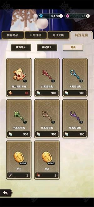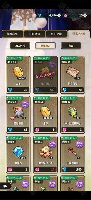 还有稀缺资源魔蕴石(粉水晶),建议攒着,不到特殊时候不要轻易使用(限定复刻时会用到),商会里用它兑换的东西基本不值,也最好不要换十抽或者用来每日两次的抽卡,物以稀为贵,它是应急用的珍贵资源,要好好留着,总之攒着别用就对了。(虽然我新手时期浪费了很多…肉疼。)