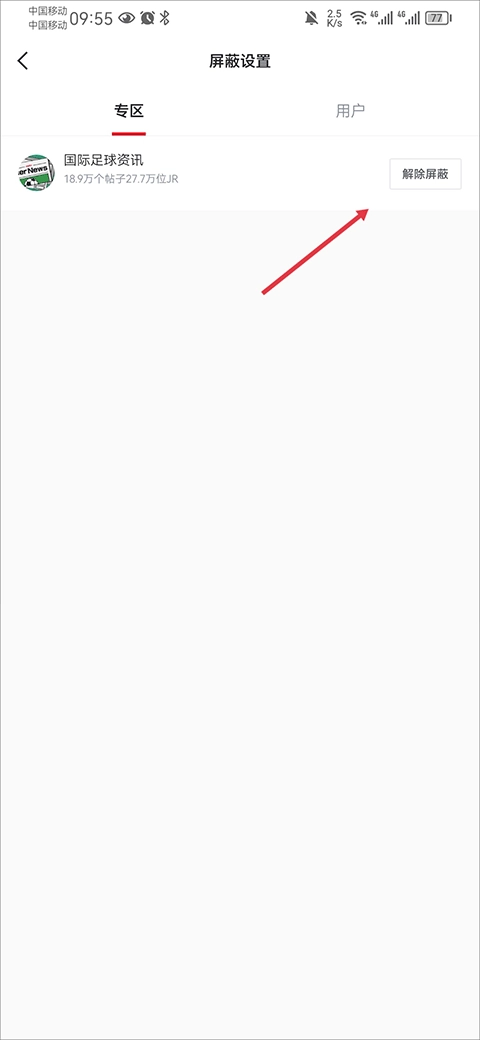 5、最后在屏蔽设置中的专区下将屏蔽的专区解除即可