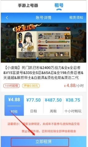 4、选择租赁的游戏时间,点击立即租用就可以了