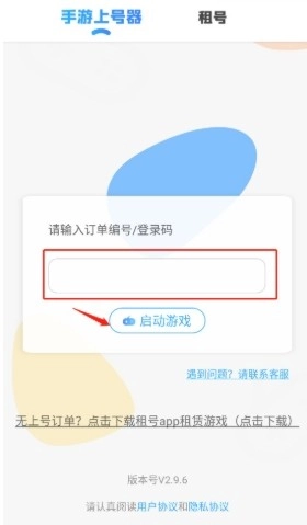6、进入“上号器”之后输入“订单编号/登录码”,再点击“启动游戏”即可