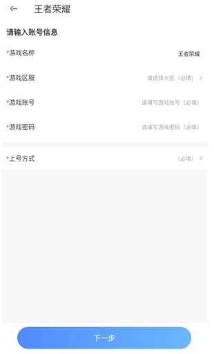 在网站上选好号并支付成功后,请及时上号器,安装上号器后录入您的用户名和登陆码(如不清楚登陆码可在网站个人中心,租赁的商品中查询),点击开始游戏,静等上号器自动输入账号密码即可