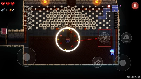 1、地牢之中,玩家控制角色去冒险战斗,不断躲避位移。