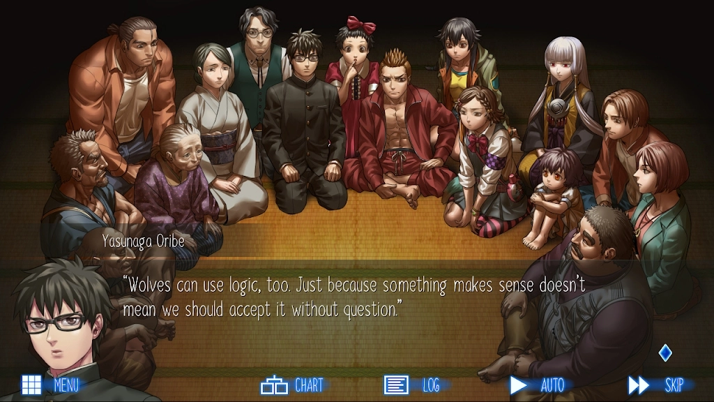 乐境虏逋(机知结局)这个时候狼已经全部暴露,现在的问题就在于如何处置狼。宽造老伯主张每天吊死一人,而泰长主张控制住两人,并在雾霁天晴后寻求法律制裁。不过阳明表示不可如此,因为这个轮回中的千枝实是连队友都可以狠心杀死的冷血杀手——当时,他们害怕马宫久子第二天被吊死前会出卖他们,就强迫她在夜间违反规则,使她被污染而死。见大势已去,千枝实表示她愿意自杀。于是,大家吊死了近望,而千枝实则跳入了皿永自杀身亡。次日雾霁天晴,黄泉忌之宴也宣告结束。然而,那八名受害者却永远地消失了,就连悬崖下的皿永滩上也没有任何被抛尸的痕迹。然而,阳明却在皿永滩上找到了一个有着三枚黄泉狼印记的吊坠。没过多久,日口庄治就带着救援队来到了休水,救出了还活着的人。虽然伤亡不小,但在这之后,休水也重新回归了正轨。在大家和阳明的鼓励下,李花子主动对阳明表白了,阳明也承诺将会在处理完东京的事务和安顿好咩子后就回休水与她一同生活。处理好一切后,阳明回到了休水打算向李花子求婚,但他却惊恐地发现,已经陷入疯狂的清之介吊死了李花子,还杀死了其他生还者!绝望的阳明杀死了清之介,轻唱着《参拜申奈》的民谣,精神恍惚地走进了漫天的浓雾之中。在如同幻觉一般的李花子的呼喊声和一个神秘声音的嘲讽声中,阳明在逐渐浓密的雾气中从山崖上跳入了皿永……
