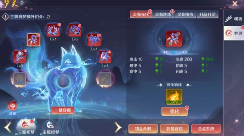 1、梦灵装备: