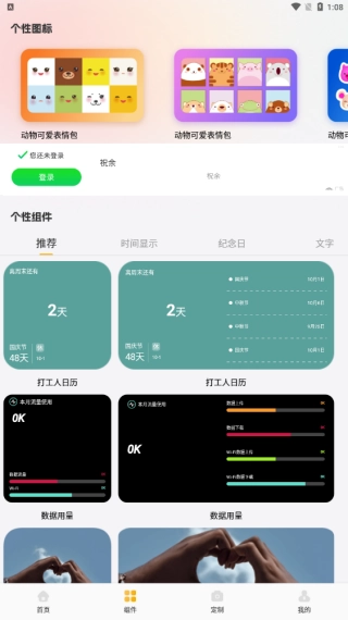 3、组件素材很丰富,推送各种超热门和精彩壁纸,提供时间显示以及各种纪念日显示