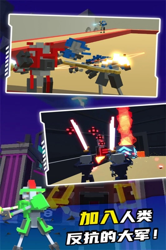 1、简单易上手:操作极为简便,玩家仅需一根手指就能操控机器人完成移动与攻击动作。哪怕是从未接触过同类游戏的玩家,也能毫无障碍地快速上手。