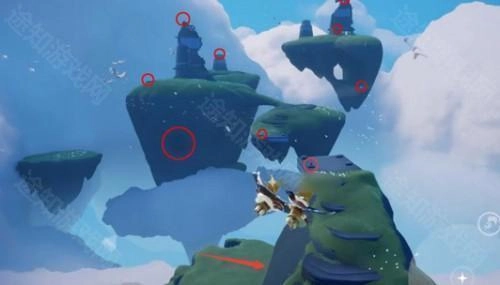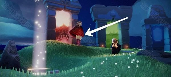 进入黑夜模式之后视角往后看,在靠近云层的位置有两个先祖,飞过去就可以了