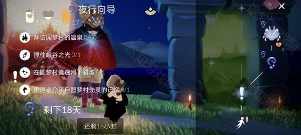 本次的季节地图在晨岛,到达之后往后面看有一个白圈 在白圈里面打坐进入黑夜模式,下面我们就一起找先祖吧!