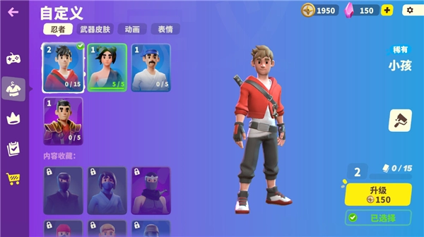 2、点击服装图标可以切换不同的忍者,右边的粉刷图标是自定义。