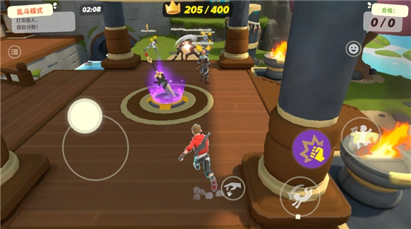 多人联机开启派对乱斗,进入同一战场开始激烈斗争。