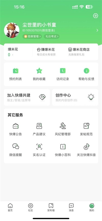 1、打开【好游快爆】进入【我的-赚爆米花】