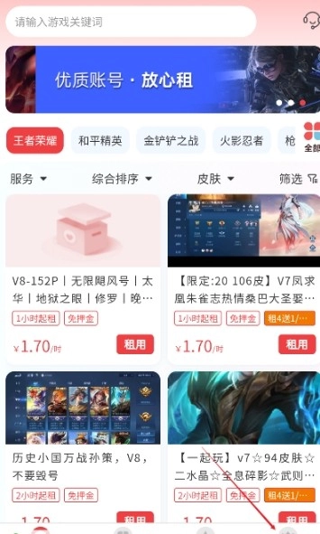 1、提供了非常多不同的游戏账号,可以随时进行租用
