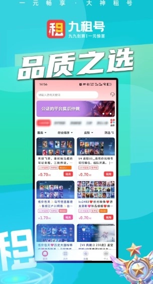 九租号平台是一款拥有海量热门游戏账号资源的专业租赁软件,专注于提供便捷的游戏账号租赁服务,交易流程简单顺畅。平台设有专属租号大厅,操作直观易用,方便用户浏览筛选优质账号信息,实现快速登录体验游戏。感兴趣的用户欢迎前往本站平台了解体验!