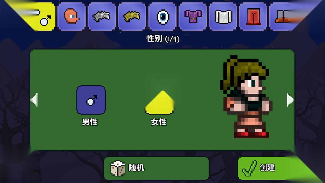 1、打开泰拉瑞亚1.2,创建角色根据自己的喜好来决定男性还是女性