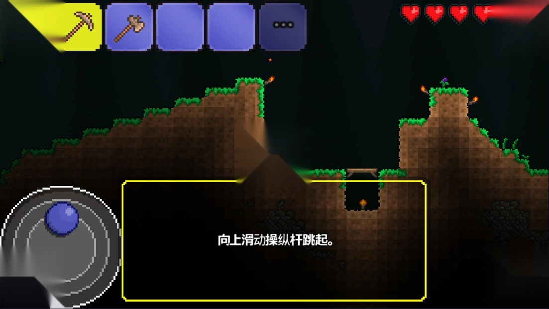 5、向下滑动操纵杆可以从木制平台上下来,现在开始试着从平台上下来吧!
