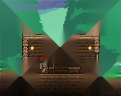 然而,为了让 NPC 可以居住,房子还必须完全被背景墙覆盖,有一个门门和光源,并且包含至少一个椅子和一个相邻的工作台或桌子。