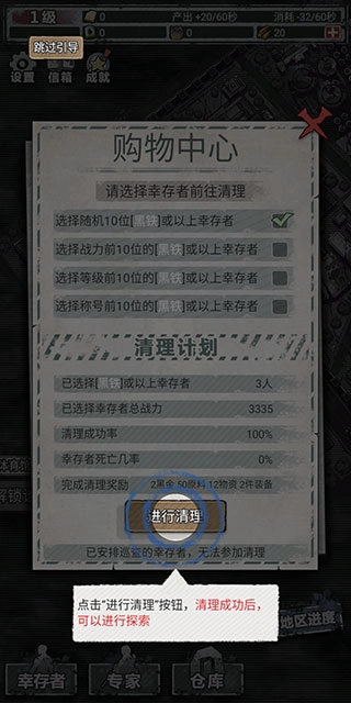 清理完成后,就能够开展探索活动了。在探索过程中,会遇到各式各样的随机事件。只要点击“购物中心”按钮,就能打开探索界面。