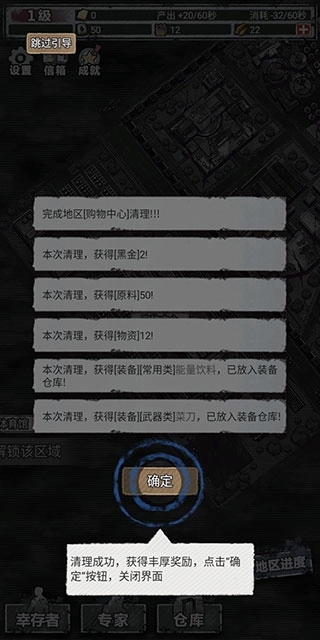 清理已完成,你获得了丰厚奖励,请点击“确定”按钮关闭当前界面。