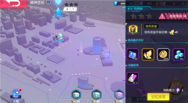 首次通关章节中的数据节点时可以获得记忆碎片(可用于提升美容店等级)奖励,后续还可以通过一键10次记忆改写获得新币、人格经验等奖励。