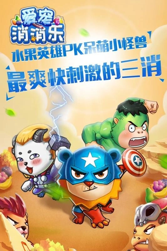 这是一款主打休闲娱乐的三消游戏,融入了益智又有趣的休闲玩法,还特别设计了水果英雄与呆萌小怪兽对战的特色元素,带来爽快刺激的三消体验。