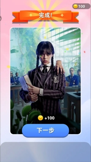 成功拼好拼图后,点击右下角闪烁的“下一关”按钮,游戏就会展示新的图案,碎片的数量和形状的复杂程度也会相应增加。