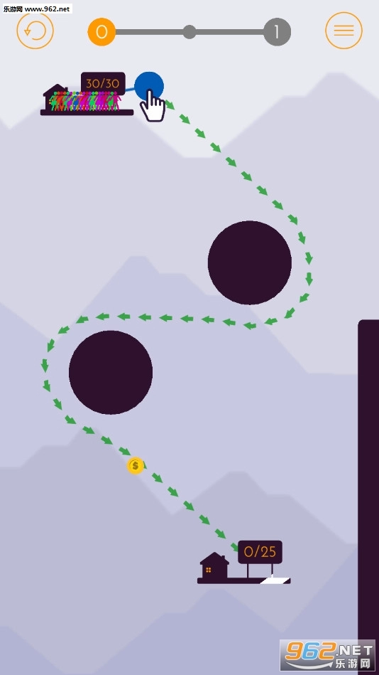 山谷飞索是一款风格清新简洁的休闲益智游戏,玩家在游戏中需要用手指牵引飞索,从上方平台出发,一路避开各类障碍物,最终顺利连接到下方平台即可通关。游戏操作简单易上手,玩法老少皆宜,是打发时间的不二之选!