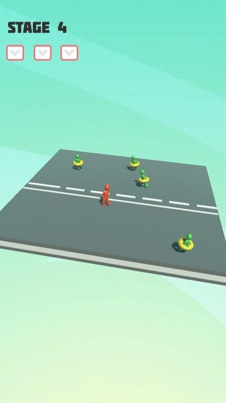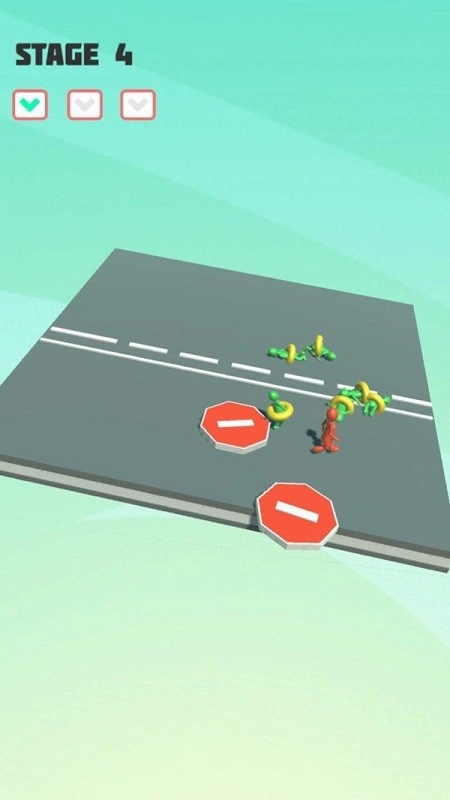 在第一阶段,操控红色角色,避开绿色角色,借助路障,规划行进路线,防止发生碰撞,保持平衡向前移动。