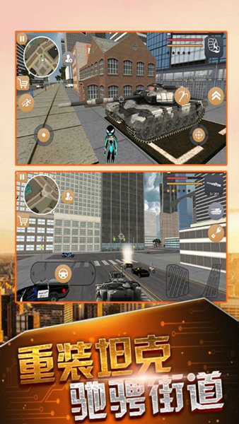 在完成任务的间隙,玩家能够随意探索这座城市,城市里有着大量隐藏元素,像停在楼顶的直升机、车库中的坦克都可以驾驶。