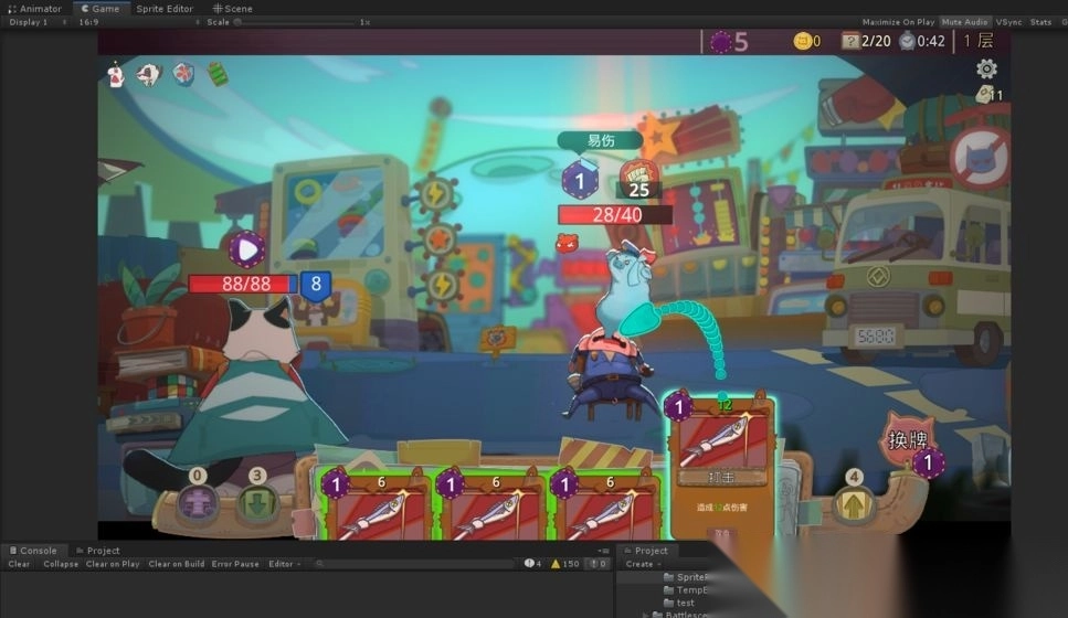 每一轮按行动点数出牌,老虎使出爪击,兔子则用飞踢,哪一方先把血量耗尽就得认输。