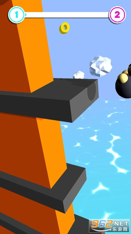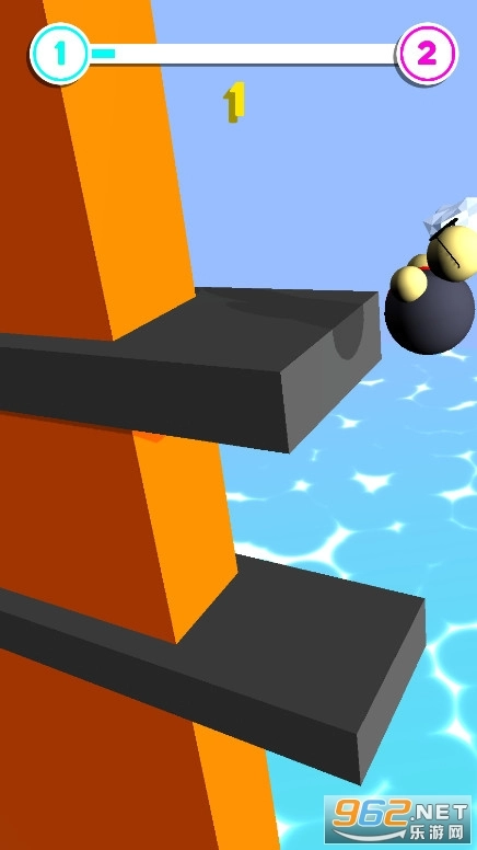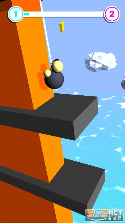 游戏的操作方式是通过蓄力来实现的,玩起来不算太难,关键在于对时机的精准把握。障碍始终处于活动状态,你得看准时机避开它们,借助晃荡的动作抵达安全的墙壁,只要坚持到最底部就算成功通关。