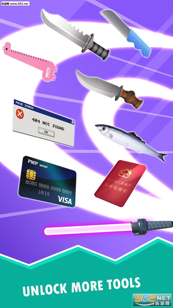 这款游戏的可玩性相当不错,玩家能够持续获取金币,并用这些金币为自己更换各式各样的菜刀,像激光刀、银行卡这类新奇有趣的菜刀都在可更换之列。